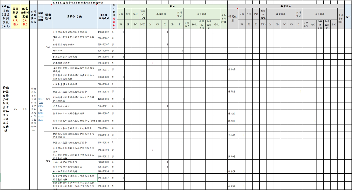 114年11月A單位輪派表